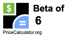 Below is our 6 beta calculator. It can estimate how the price of a stock with a beta of 6 will change based on how the market changes. To use this calculator, enter the current price of a stock with a beta of 6 and the percentage change of the market.