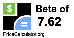 Below is our 7.62 beta calculator. It can estimate how the price of a stock with a beta of 7.62 will change based on how the market changes. To use this calculator, enter the current price of a stock with a beta of 7.62 and the percentage change of the market.