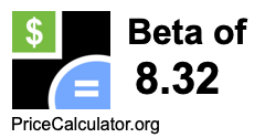 Below is our 8.32 beta calculator. It can estimate how the price of a stock with a beta of 8.32 will change based on how the market changes. To use this calculator, enter the current price of a stock with a beta of 8.32 and the percentage change of the market.