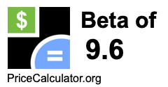 Below is our 9.6 beta calculator. It can estimate how the price of a stock with a beta of 9.6 will change based on how the market changes. To use this calculator, enter the current price of a stock with a beta of 9.6 and the percentage change of the market.